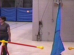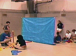 - Explain to the team that the curtain represents the fog that plagues this bridge building effort, and the tape represents the river bank.